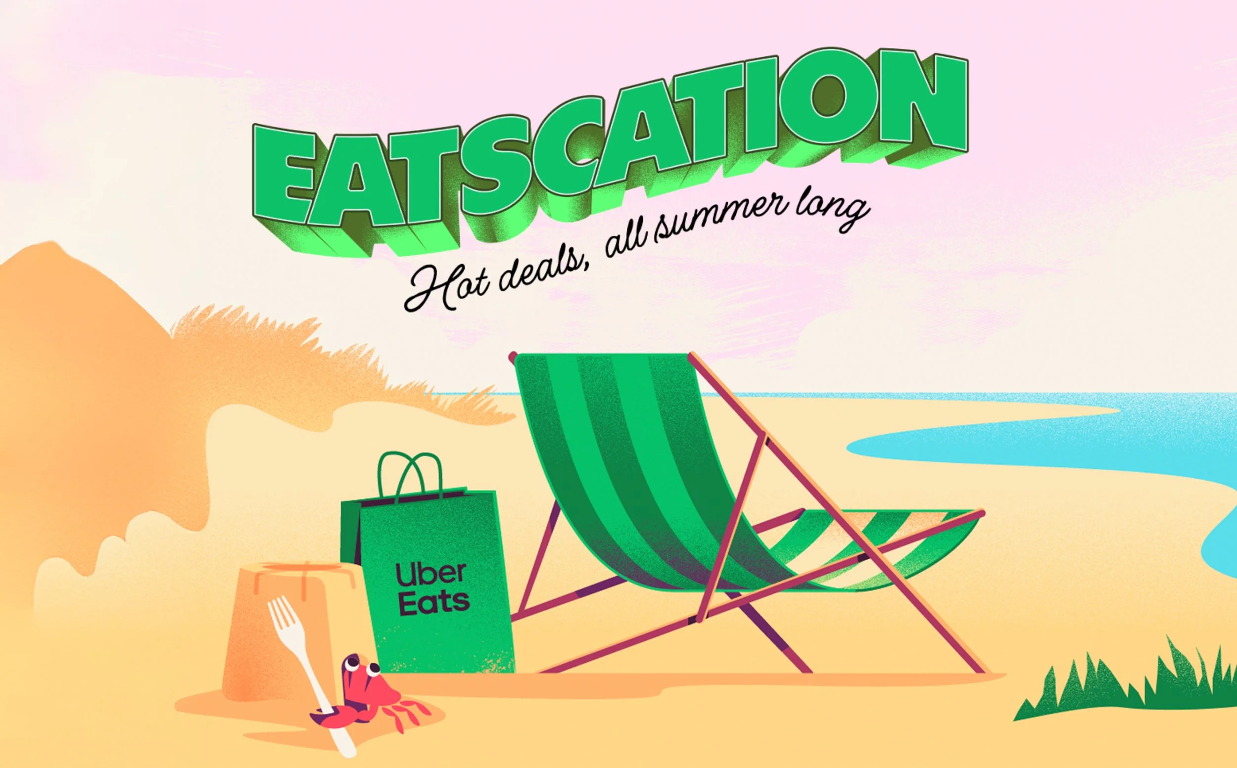 I led the creative development of “Eatscation,” a summer-long Uber Eats campaign built around the season’s hottest delivery deals, in partnership with the agency Special Group. It was Eats first take on a seasonal deals platform, and it set the foundation for how we approached deals going forward. Each week highlighted a new restaurant partner, paired with custom vintage-inspired summer artwork by the very talented Gustaf Öhrnell Hjalmars.
